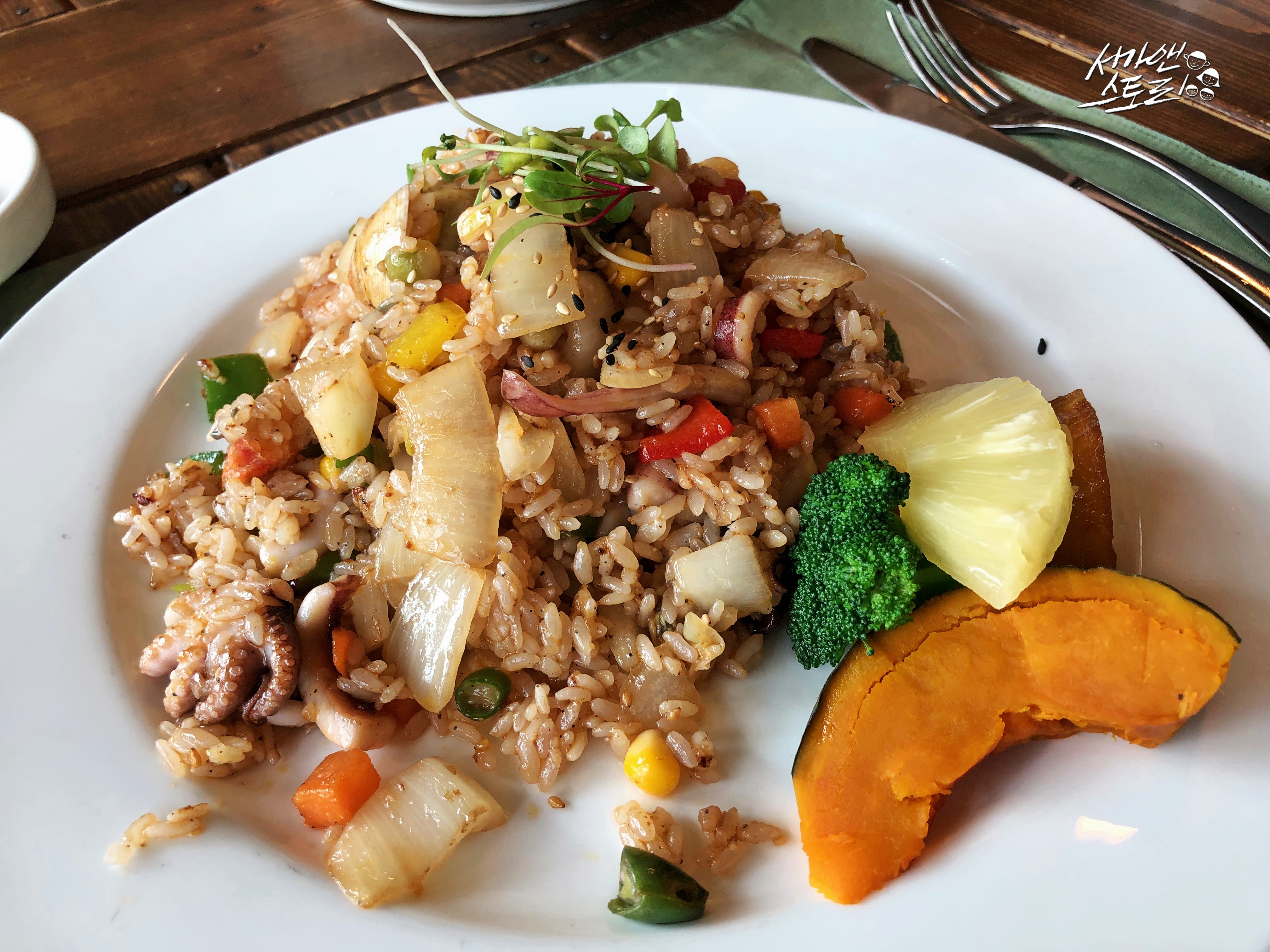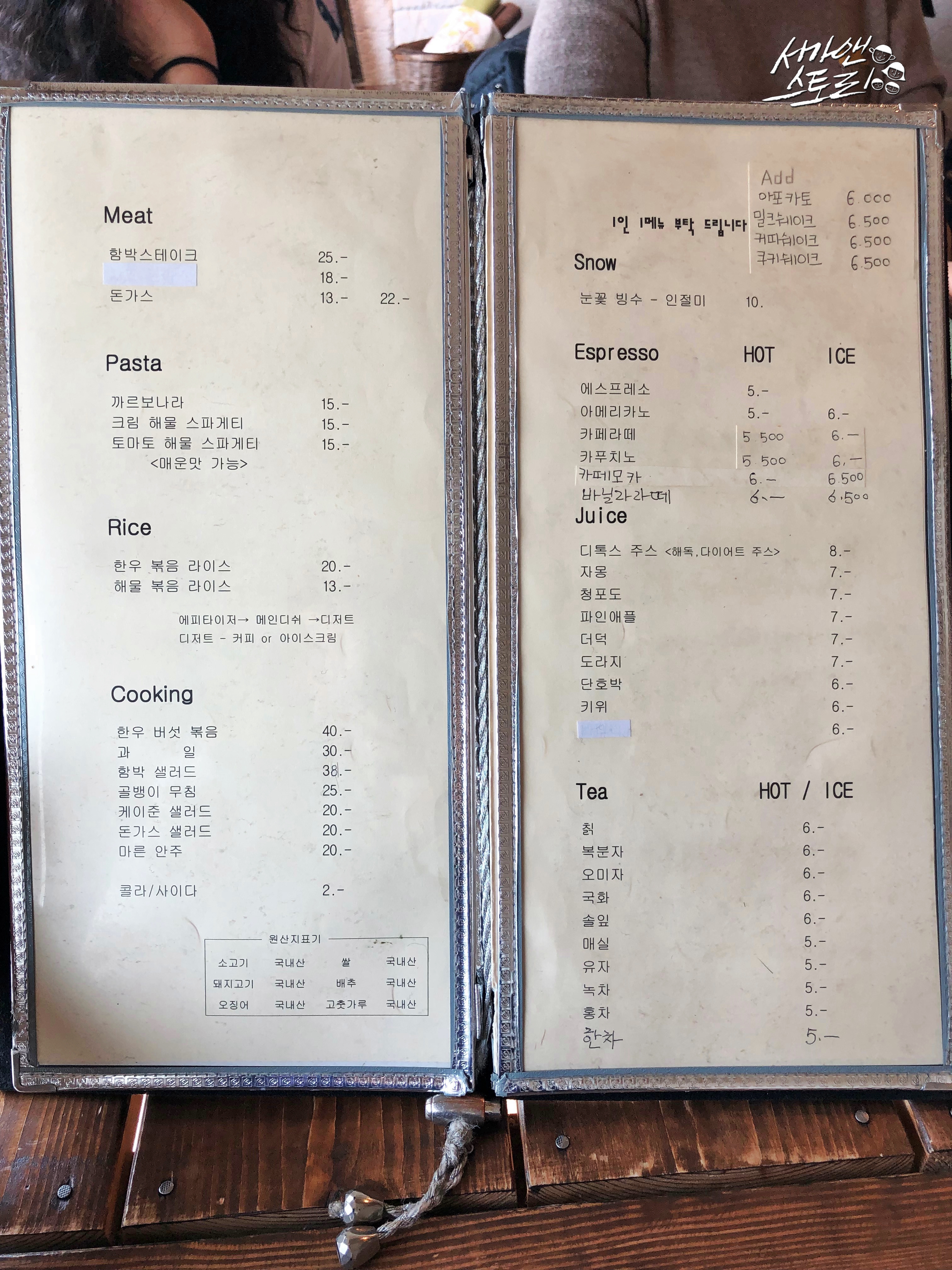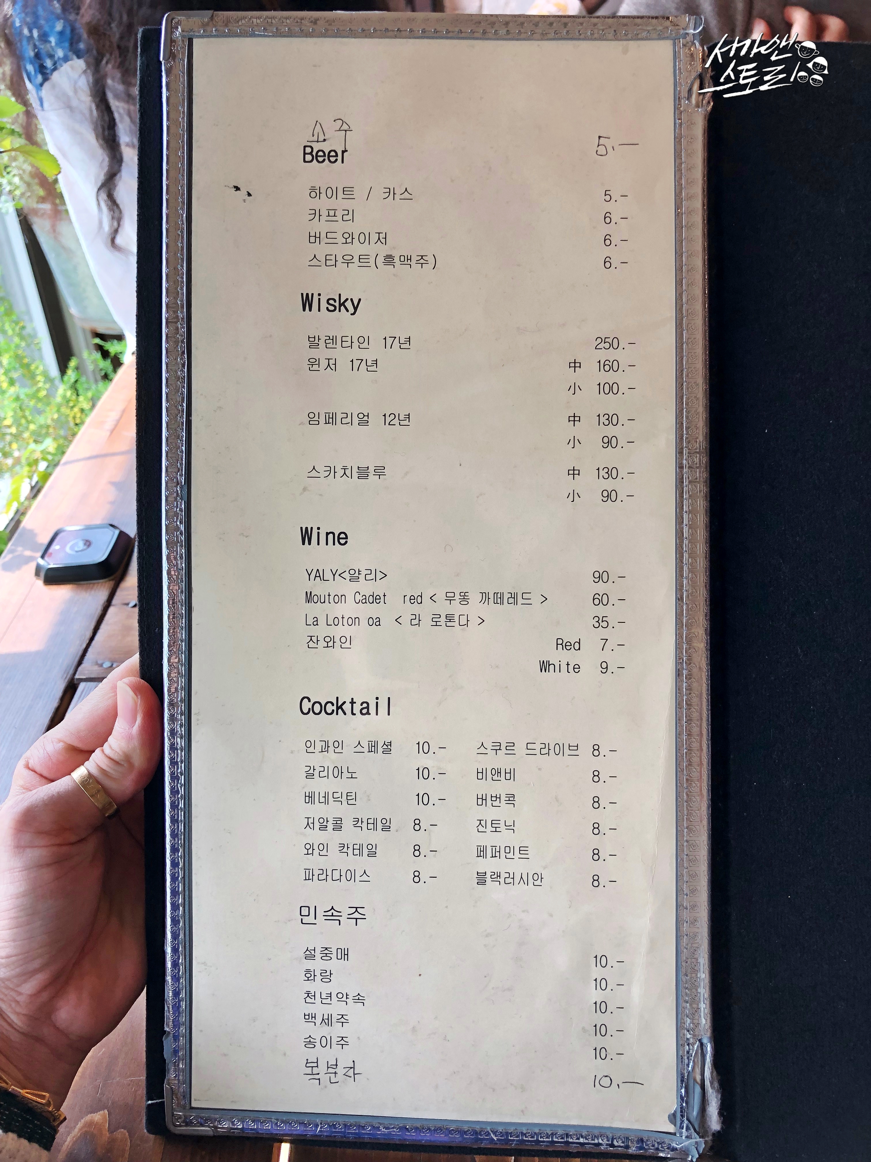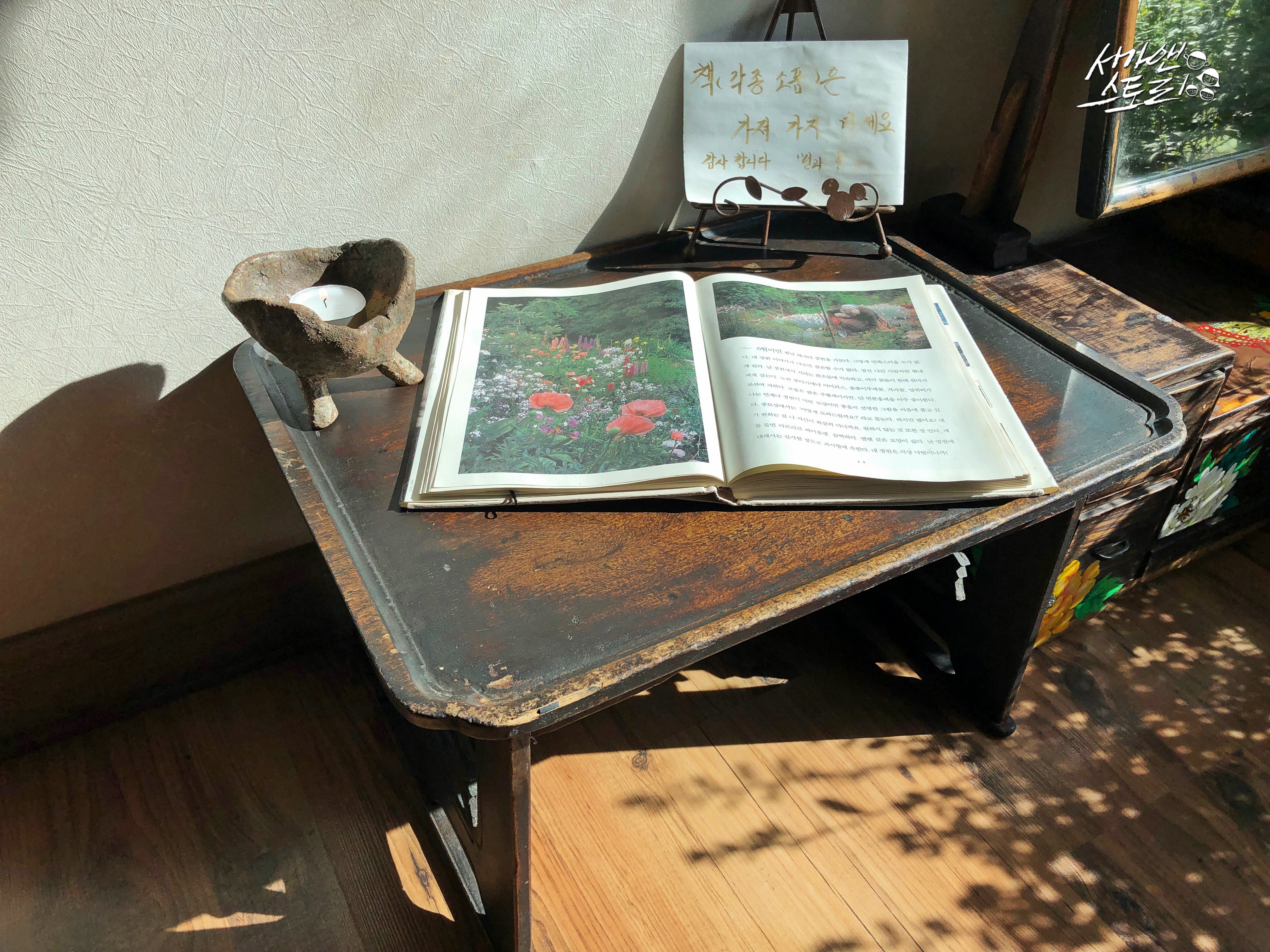 ↗햇살이 따사로운, 그러나 바람은 아직 조금 쌀쌀하기도 한 그런 봄날에 진달래가 활짝 피었습니다. 잎도 내기 전에 꽃부터 피워내어 보는 이들의 마음을 설레게 하는 진달래는 그 모습이 왠지 수줍은 새색시같습니다. 화려하지 않지만 그 모습이 그저 고와서 자꾸만 바라보게 되지요. 어린이집 요리수업으로 아이들이 진달래 화전을 구워왔었던 그 날, 그 화전 속에서도 고운 빛깔을 그대로 간직하고 있어 서가맘은 눈으로 먼저 먹었답니다.↗이 좋은 봄날에 어린이집 원장님이 특별한 이야기를 해 주신다고 해서 몇몇 엄마들과 함께 시간을 내었답니다. 좋은 사람들이 함께 모여 좋은 시간을 보내기로 한 이 곳은 영천시 금호읍에 위치한 까페 [인과인]이랍니다. 가끔 농부같은 느낌으로 다가오는, 꽤나 부지런하신 사장님의 손끝에서 일궈지는 이 곳은 제가 좋아하는 곳이기도 하지요!↗아이비 넝쿨이 너무도 사랑스러운 인과인 레스토랑은 오전 11시부터 오후 11시까지 열려 있답니다.↗할머니 어릴 적에 쓰셨을 법한 물건들이 가지런히 놓여 있어 메인 카운터는 꽤나 정겹답니다.↗옆으로는 곱게 말려두신 풀꽃들이 너무도 고왔답니다, 화려하지 않지만 우리의 일상을 담고 있는 듯 해서 제겐 더없이 고와 보였어요.↗엄마들과 함께인지라 인원이 조금 많아서 넓은 룸으로 들어왔어요, 아늑한 이 곳.. 응? 저 뒷태는 누구이신지!↗어머, 귀여운 고양이 한 마리! 햇살이 따사로운 날이었는데 이 녀석도 그게 너무 좋았나 봅니다. 가만히 누워 있다가 저를 한 번 빤히 쳐다보더니 다시 턱을 괴고 누워 쉬는 거 있지요. 전 깜짝 놀랐는데 얘는 아니었나 봐요. '내가 잠시 나갔다 올게, 더 쉬어.' 하고는 조용히 나왔답니다.↗일행들도 아직 오지 않고, 고양이도 햇볕을 쬐고 있는지라 살짝 건물 바깥으로 나와 봄꽃구경을 하며 볕을 쬐고 살랑이는 바람을 맞았답니다.↗기왓장에서 물이 졸졸 흘러 더욱 봄이 오는 소리를 듣고 있는 듯 경쾌해졌답니다.↗별같이 고운 꽃봉오리도 보고, 싱그럽게 돋아난 돌나물도 보았답니다.↗노란 술 가득한 자그마한 빨간 꽃도 보았답니다.↗낮은 벽돌 담에는 연보랏빛 들꽃이 어찌나 앙증맞게 자라고 있었는지 몰라요. 잎도 별처럼 어찌나 귀여운지!↗혼자 정원에서 한참 볕을 쬐다가 다시 들어왔답니다. 손님들이 아직 없을 때 까페 여기 저기를 찬찬히 둘러보고 싶었거든요.↗다른 테이블도 한 번 보고.↗저희가 예약한 방으로 돌아왔습니다. 옛날 옛날 할머니가 쓰셨을 법한 미싱과 찔레 열매가 너무도 곱지요. 고양이는 가고 없었어요. 사장님이랑 마주치며 제가 깜짝 놀라 고양이가 갑자기 움직이는 줄 알았다고 했더니 사장님이 그러시더라고요, 밖에서 지내는 아이인데 언제 들어왔는지 따뜻한 볕을 쬐고 있다며 놀라게 해서 미안하다고.. 하핫, 그만큼 오늘 날이 너무 따스하고 좋았던 거죠!↗방 한 켠에는 아주 오래 전 아씨가 앉아 시집이라도 읽었을 법한 낡디 낡은 상도 놓여 있었답니다.↗테이블 위에 놓여진 소금통, 후추통, 그리고 티슈.↗메뉴판입니다, 쌀과 배추, 고춧가루, 소고기, 돼지고기, 오징어 원산지 표기는 모두 국내산이었어요.↗소주, 맥주, 위스키, 와인, 칵테일, 민속주로 나눠져 있었는데 종류별로 꽤 다양했어요.↗잠시 이야기를 나누다보니 따뜻한 모닝빵이 딸기잼과 함께 나왔어요.↗담백한 스프도 이어 나왔답니다, 빵을 찍어 먹어도 그냥 먹어도 그저 맛있었어요.↗서가맘이 너무도 사랑하는 샐러드, 아삭하고 상큼해서 오늘도 '샐러드 더 주세요.' 라고 말해버렸답니다.↗오이와 무와 당근이 들어간 피클, 전 이거 없으면 섭섭해서 안된답니다.↗김치도 함께 나왔어요, 한국 사람들에겐 없으면 아쉬운 기본 밑반찬.↗앞에 앉은 한 엄마가 시켰던 까르보나라, 저도 크림 소스 가득한 까르보나라 정말 좋아하는데 막달까지 입덧을 하는지. 밀가루는 아직도 먹고 나면 속이 쓰리고 좋지 않아서 1년이 다 되어 가도록 먹지 못하고 있는 그림의 떡이랍니다. 셋째 낳고서 첫 외출 가능해지면 꼭 까르보나라를 먹어야지! 그러고 있어요. 그게 꼭 까르보나라 뿐일까요, 애 키우다보니 못 하게 되는 것, 자제하는 것들이 너무 많아 미루고 미루다 보니 '애들 크고 나면 꼭 해야지!' 하는 목록은 늘어만 갑니다.↗제가 시킨 해물라이스, 안 맵게 해 달라고 적었는데 제대로 전달이 안 되었는지 매콤하게 나왔답니다. 그런데 오히려 매콤해서 더 맛있게 먹은 것 같아요. 주문하실 때 [맵게, 안 맵게] 꼭 말해 주세요. 안그럼 청양고추 많이 많이 넣어주신답니다.↗옆에 앉은 한 엄마가 시켰던 돈까스, 한 입 먹어보니 고기가 두껍고 맛이 좋았어요. 매운 맛 좋아하시는 분들은 송송 썬 청양고추를 포크에 끼워서 함께 드시던데 느끼하지 않아 너무 좋다고 하더라고요. 이 집의 매력이죠.↗음식에 올려주는 청양고추가 부족하다며 더 요청을 하신 분이 계셔서 사장님이 청양고추를 이렇게 듬뿍 주셨답니다.↗디저트로 나온 오렌지 주스, 맛있게 잘 마셨습니다.↗봄 햇살이 너무도 따스해서 벌써 아이스아메리카노를 찾으시는 분들이 생겼답니다. 아, 꽤나 더워서 서가맘도 너무 마