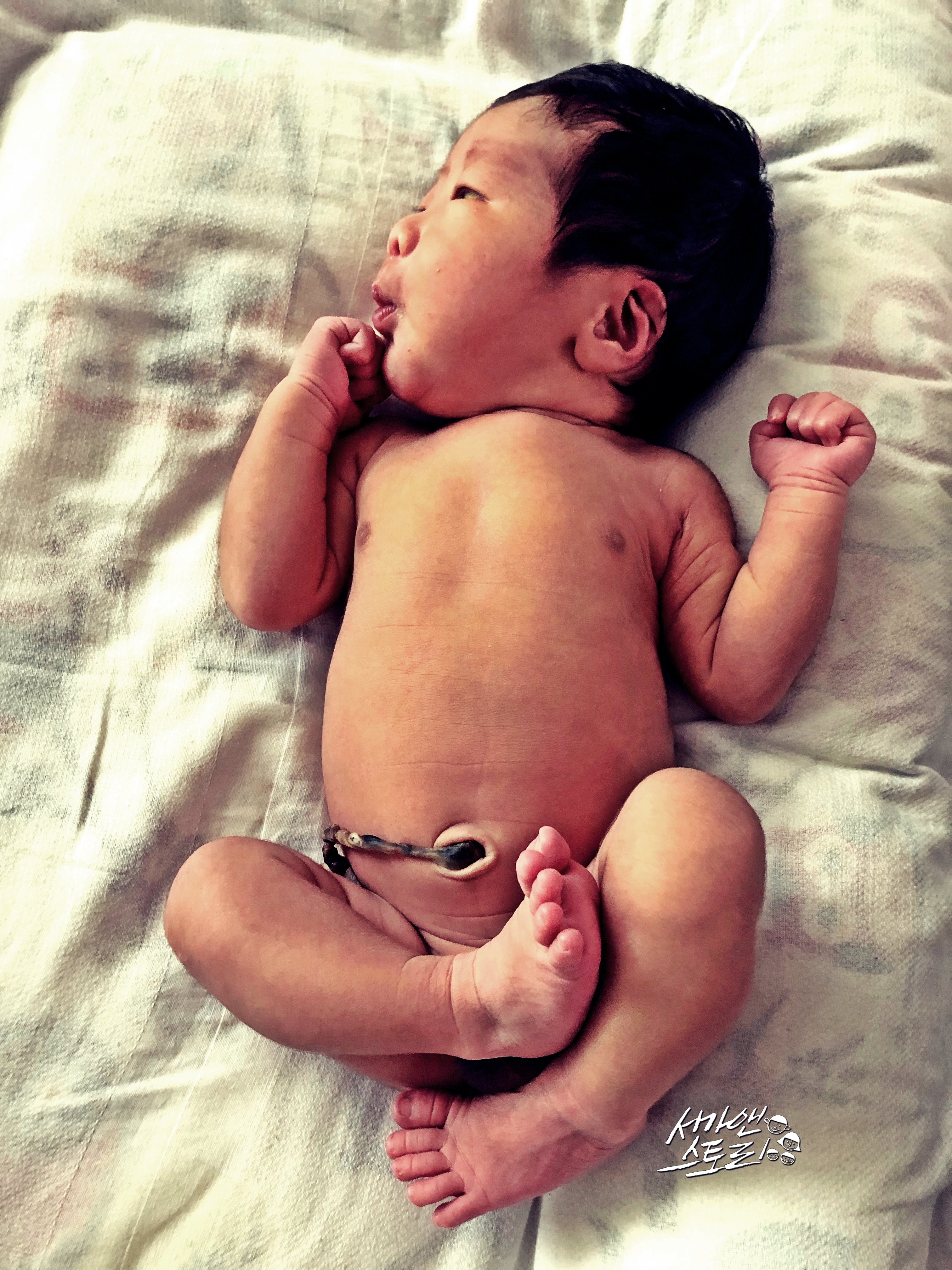 ↗탯줄이 거의 말라가고 있던 날이었답니다. 탯줄은 8일째 떨어졌는데, 이건 6일째였어요. 누가 미리 가르쳐 주기라도 한 것 마냥 아이들은 어쩜 하나같이 저렇게 입을 오므린 채 귀여운 표정을 지어내는지요.