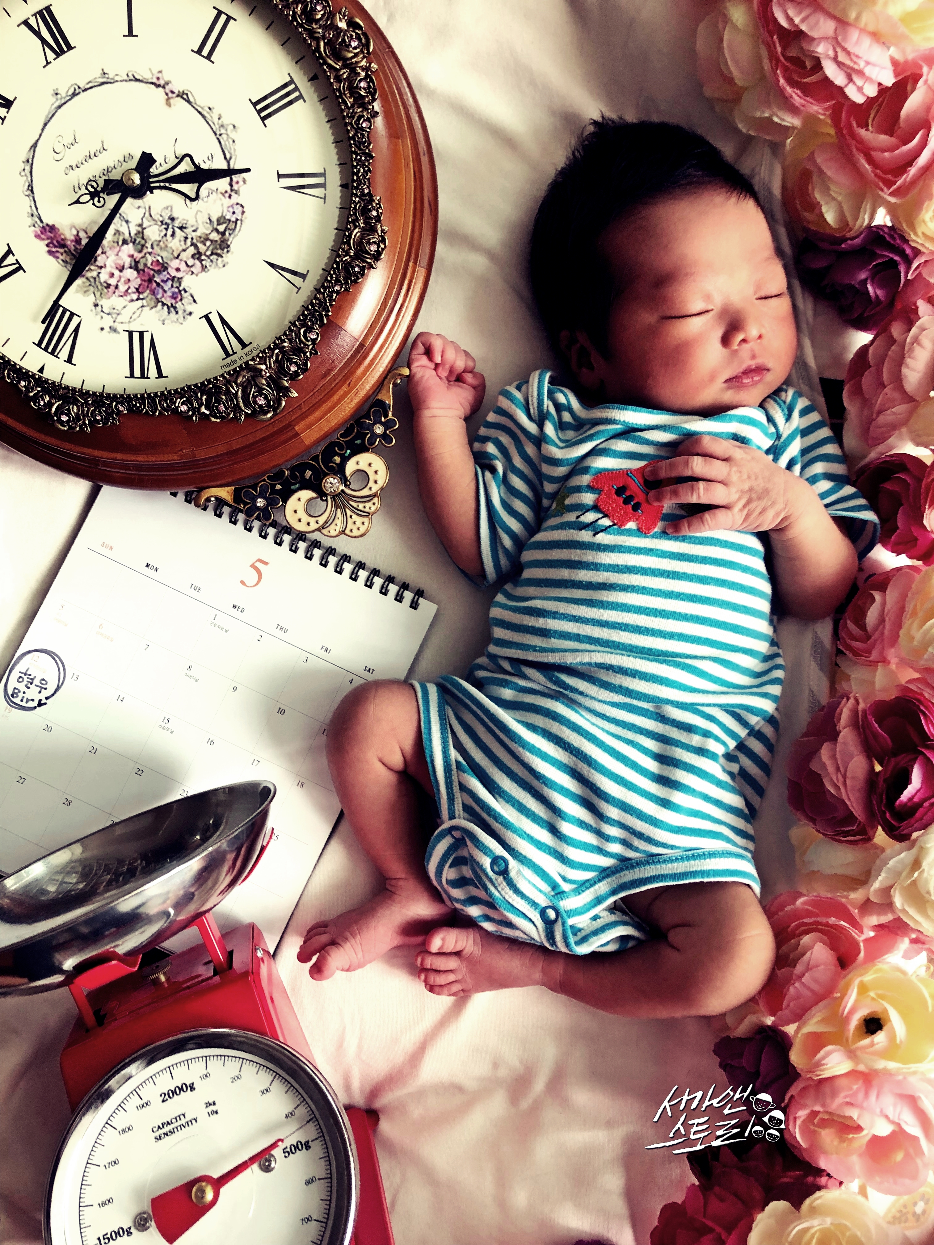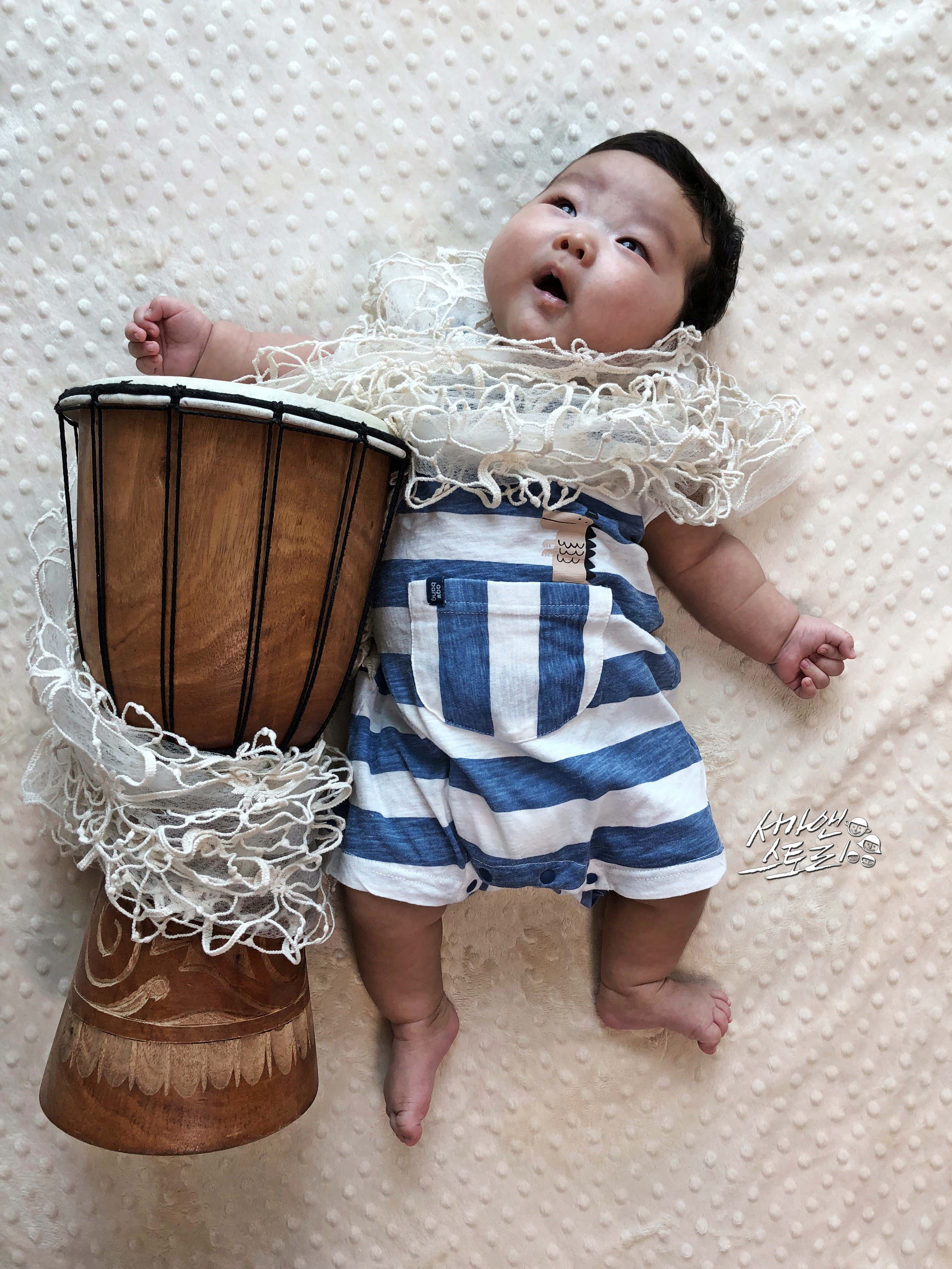 ↗한달새 살이 통통하게 올랐죠? 조그만할 때 더 많이 찍어줄 걸 후회가 되던 순간이었답니다. 아쉽지만 신생아 샷은 이젠 물 건너가 버렸어요. 더이상 후회없도록 커 가는 모습 더 부지런히 담아줘야겠다 싶었네요.