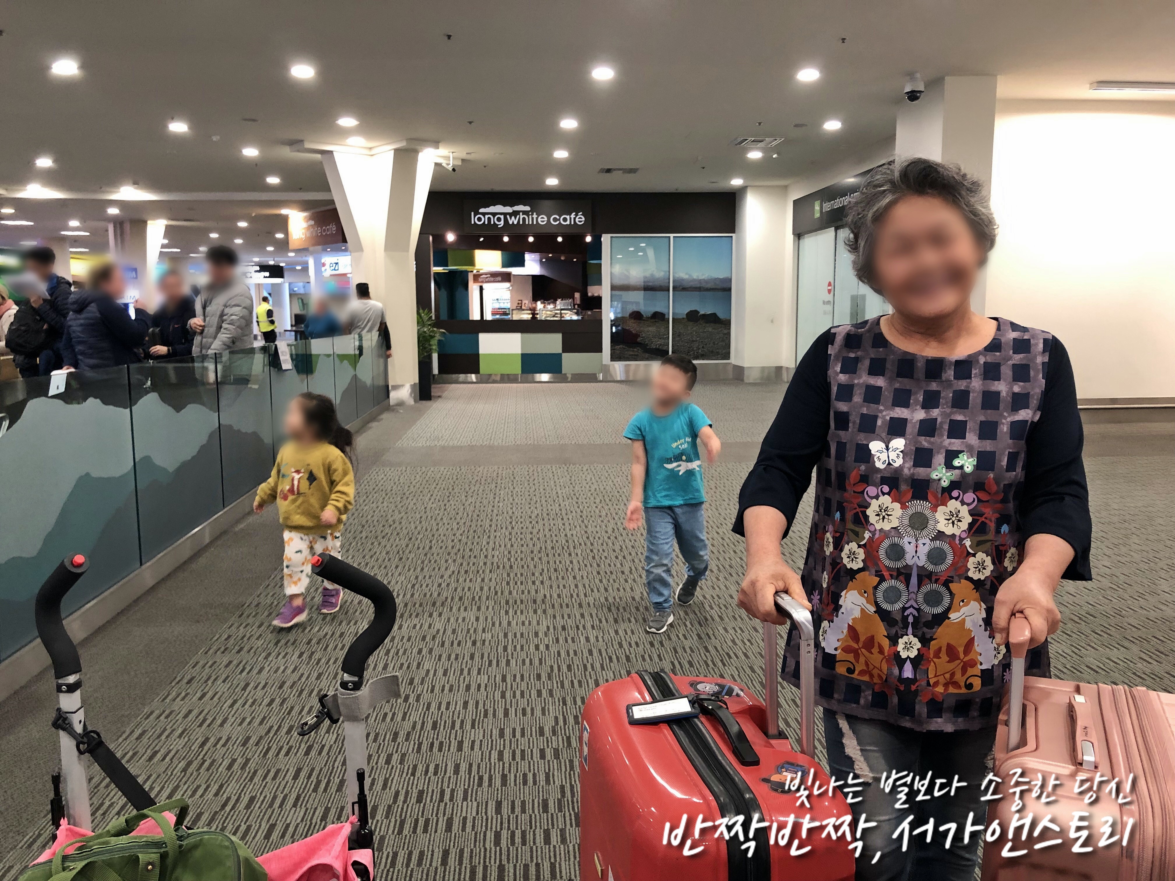 ↗저는 아기를 안고, 친정엄마는 큰 아이 둘을 양 손에 잡고 크라이스트처치 공항으로 들어가는 길입니다. 긴 여행에도 불구하고 아이들의 발걸음도, 제 발걸음도 가볍습니다.