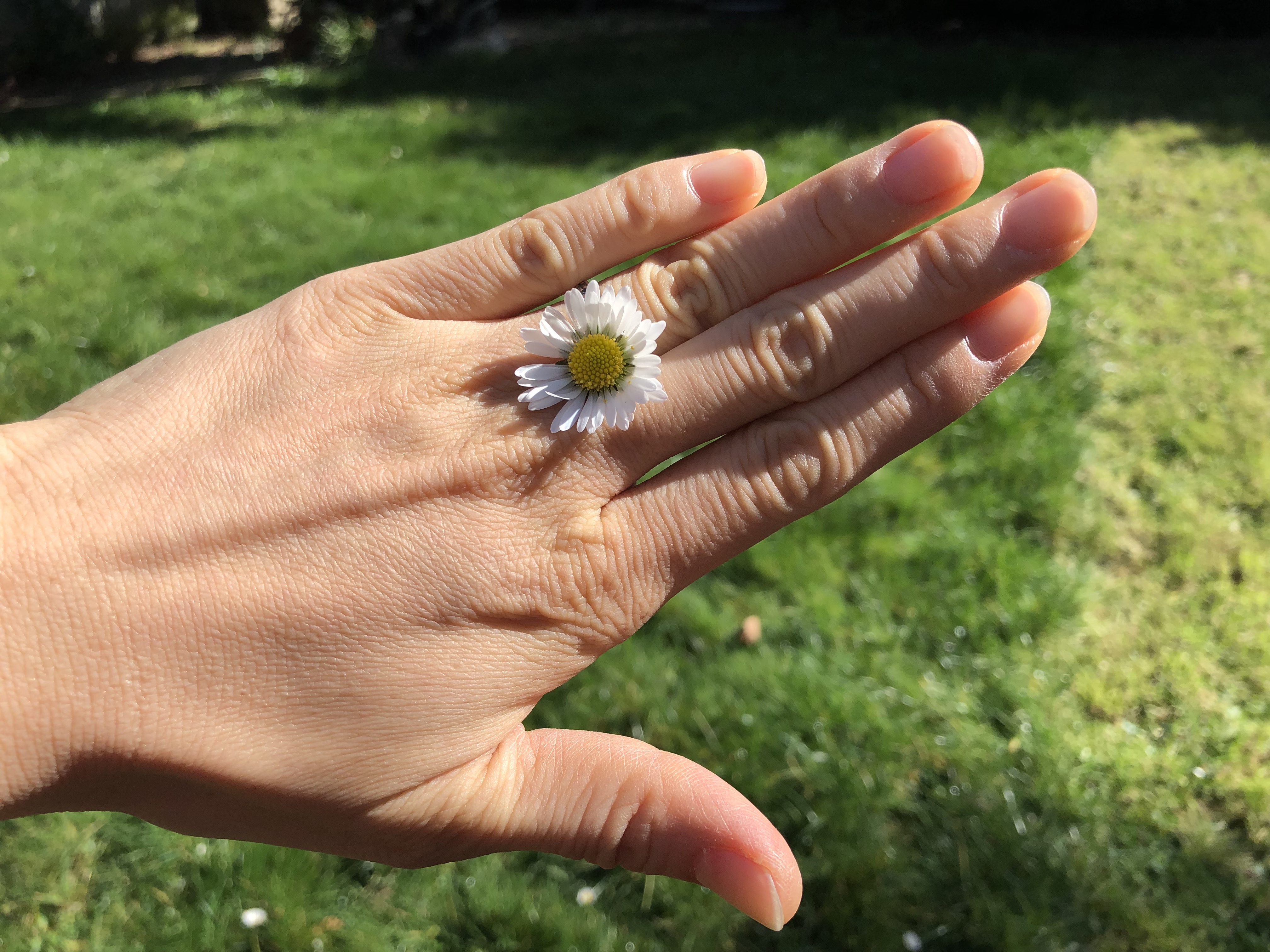 ↗아이가 따다 준 꽃 한송이를 손가락 사이에 끼워보았더니 꼭 꽃반지를 낀 듯 참 예뻤어요.