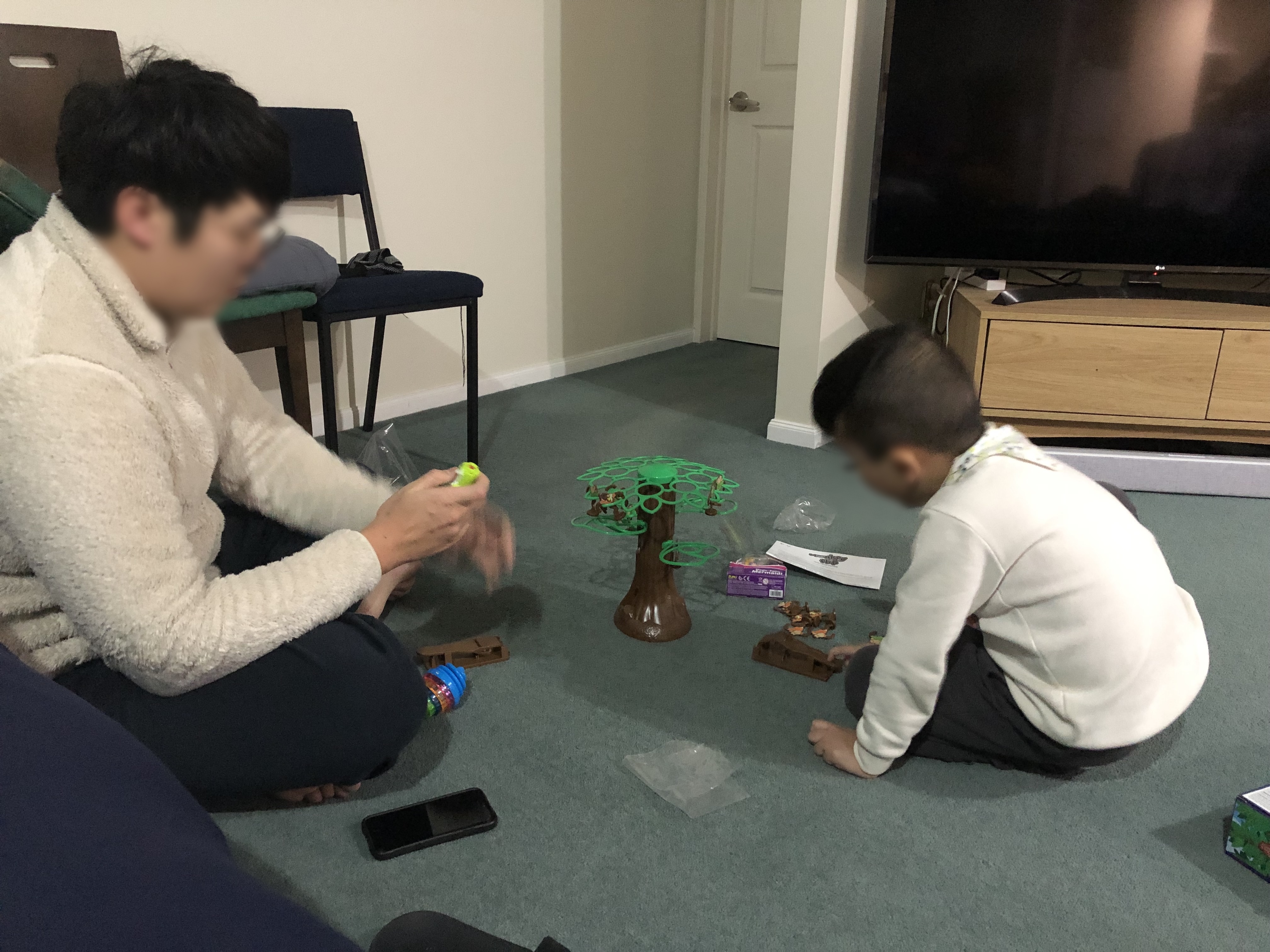 ↗당장 필요한 몇 가지를 사러 간 거였는데 참새가 방앗간을 그냥 지나칠 수 없듯 우리 아이들도 그랬답니다. 장난감 코너에서 이거 들었다 저거 들었다를 반복하다가 결국 눈물 쏙 빼고 우여곡절 끝에 장난감을 하나씩 집어왔답니다. 집으로 돌아와 이모부와 함께 원숭이를 점프대에서 날려보내 나무에 거는 게임을 하며 언제 그랬냐는 듯 꺄르르 거렸지요.