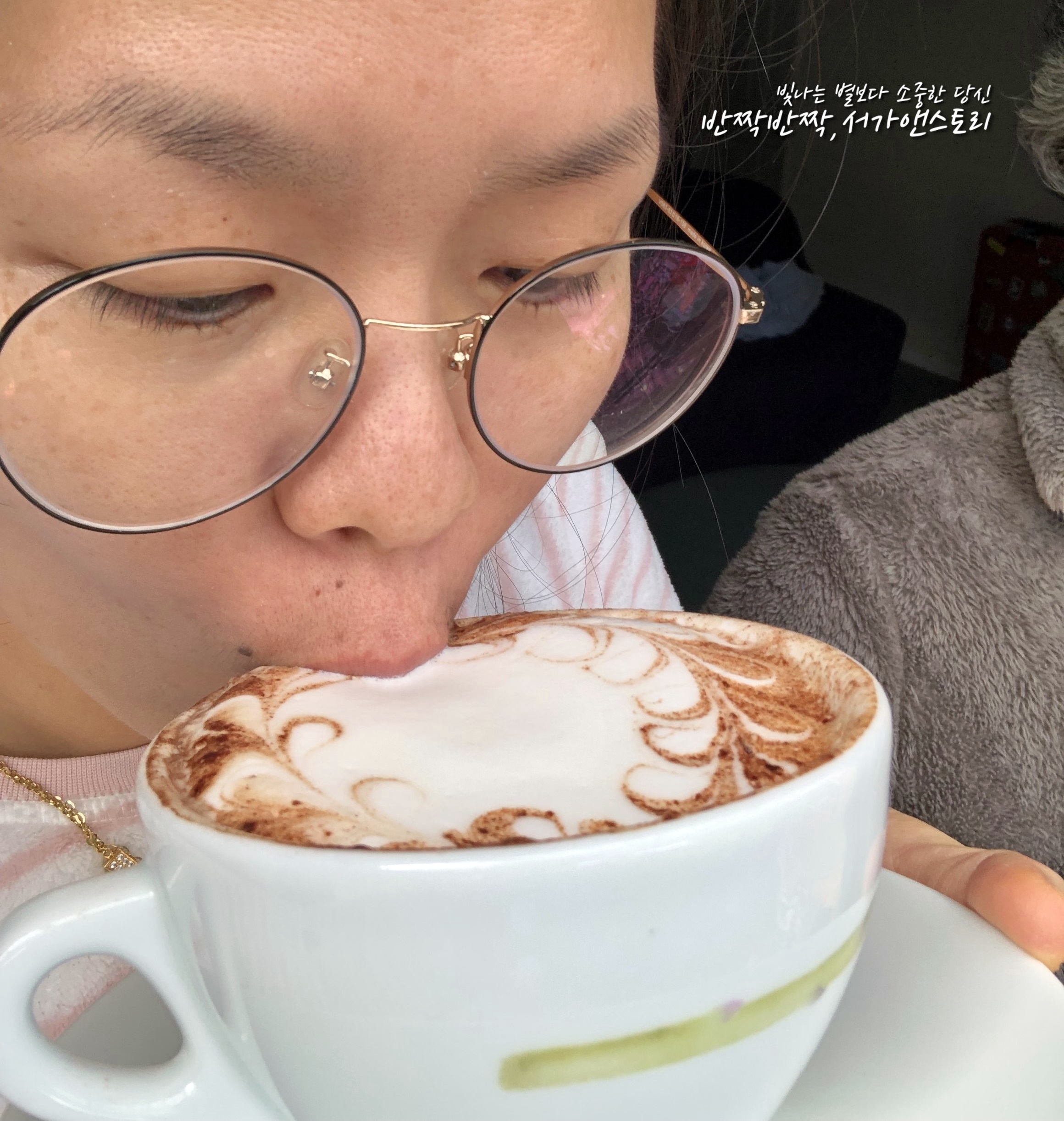 ↗부드러운 우유거품 가득 올려서 시나몬 가루를 톡톡 뿌려 카푸치노 한 잔!