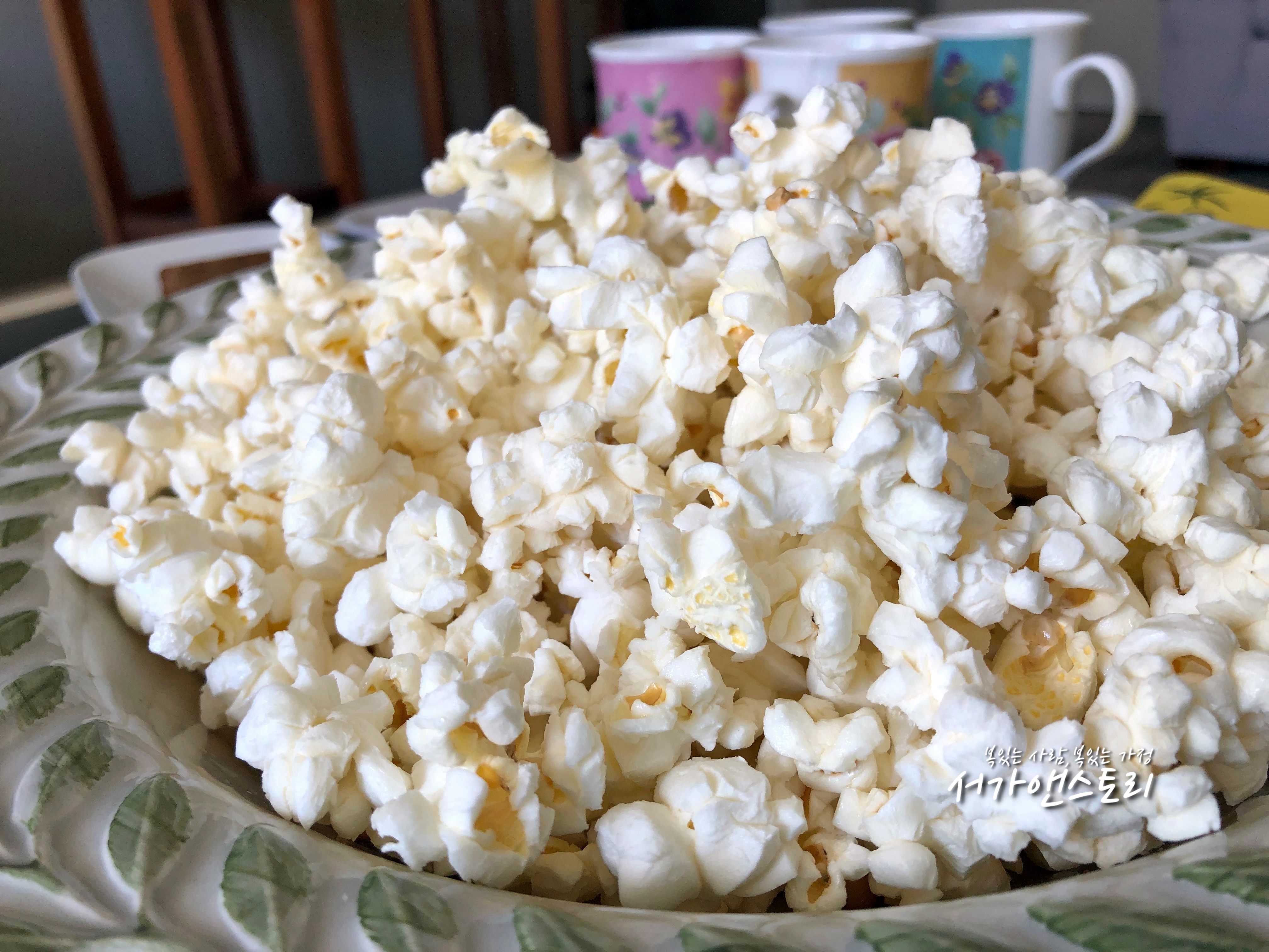↗아이들을 데리러 가기 10분 전에 튀겨주신 팝콘, 아기 옷도 챙기고 나갈 채비를 하고 있었는데 이것도 먹고 가라며 급히 튀겨주셨어요. 갓 튀겨낸 팝콘이라 얼마나 따뜻하고 고소했는지 몰라요. 팝콘을 보니 또 우리 아이들 생각이 나서 마음이 그랬어요, 요 녀석들 팝콘 엄청 좋아하는데 싶어서!
