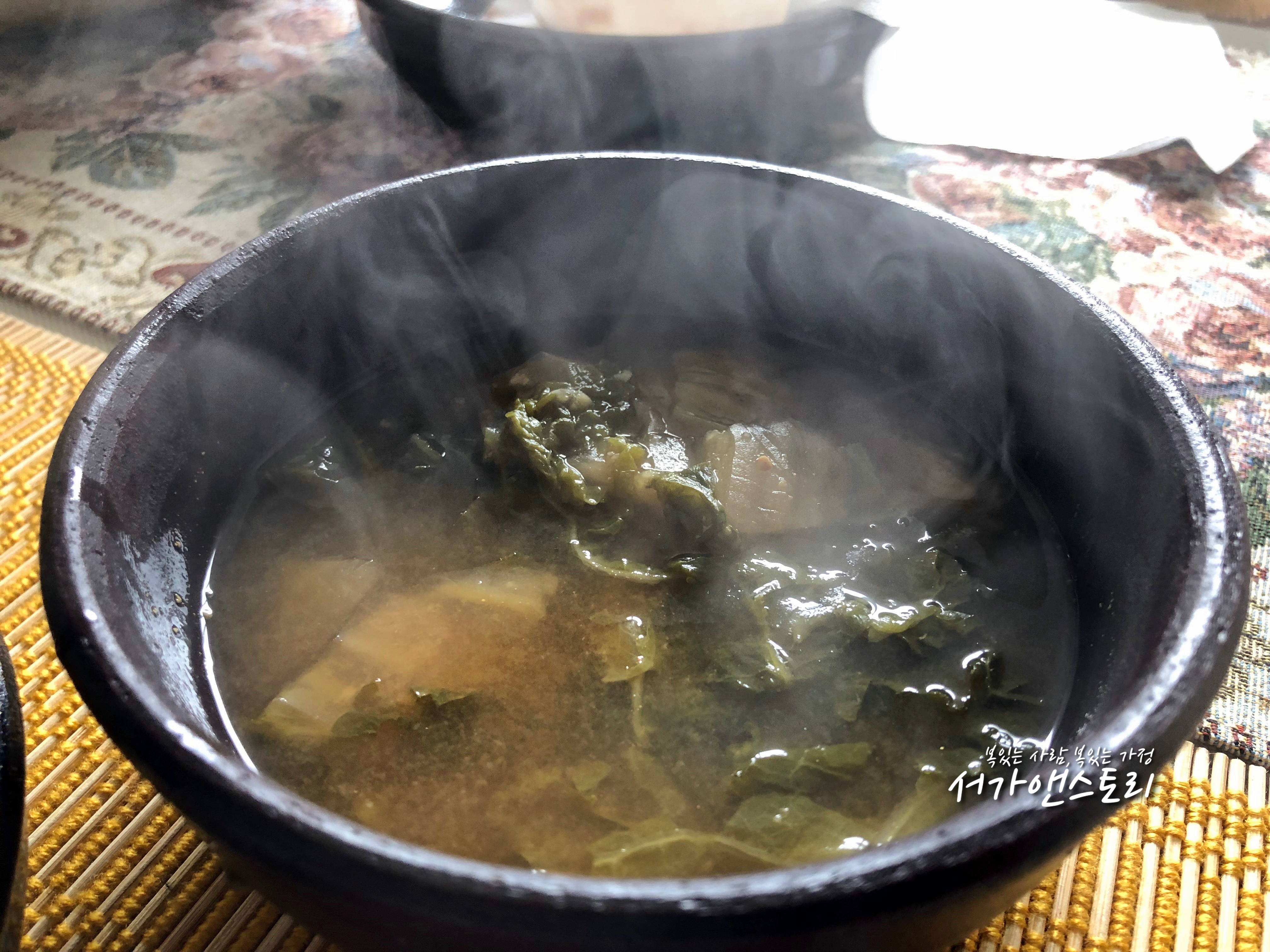 ↗비빔국수도 차갑고, 유부초밥도 차갑다며 배추된장국도 내 주셨어요. 날씨도 추운데 음식 중에 뭔가 하나는 따뜻해야 속이 따뜻하고 좋다며 주셨지요, 추위를 많이 타는 서가맘에게는 왠지 나를 향한 배려같아 더욱 감사했답니다.