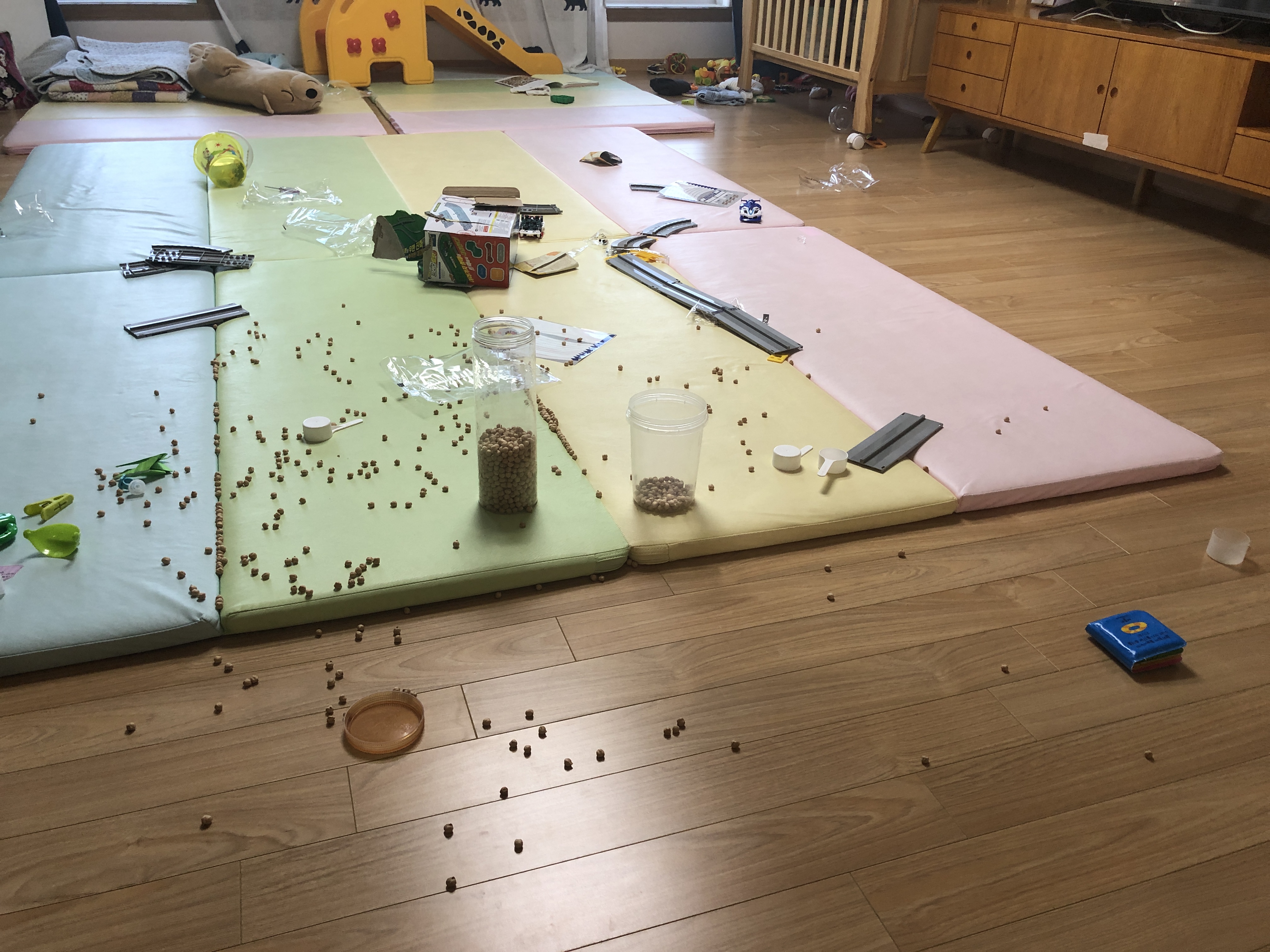 잠깐 한눈 판 새 병아리콩을 갖다 부어놨네.